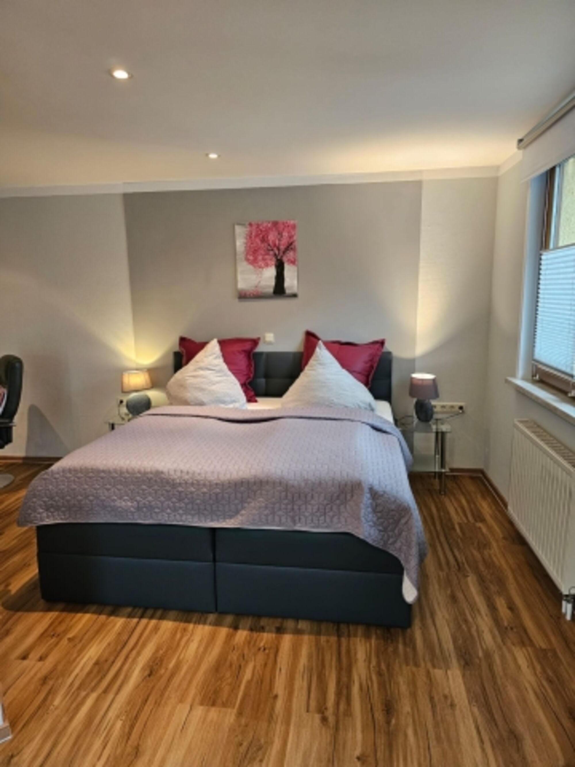 Doppelbett 1,80 x 2,00m, Boxspringbett, Spiegel, Leselampe am Bett