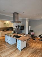 Cerankochfeld, Dunstabzugshaube, Kühlschrank mit Gefrierfach, Gefrierschrank, Korkenzieher / Flaschenöffner, Geschirrhandtücher, Mülltüten, Essplatz in der Küche, TV in der Küche