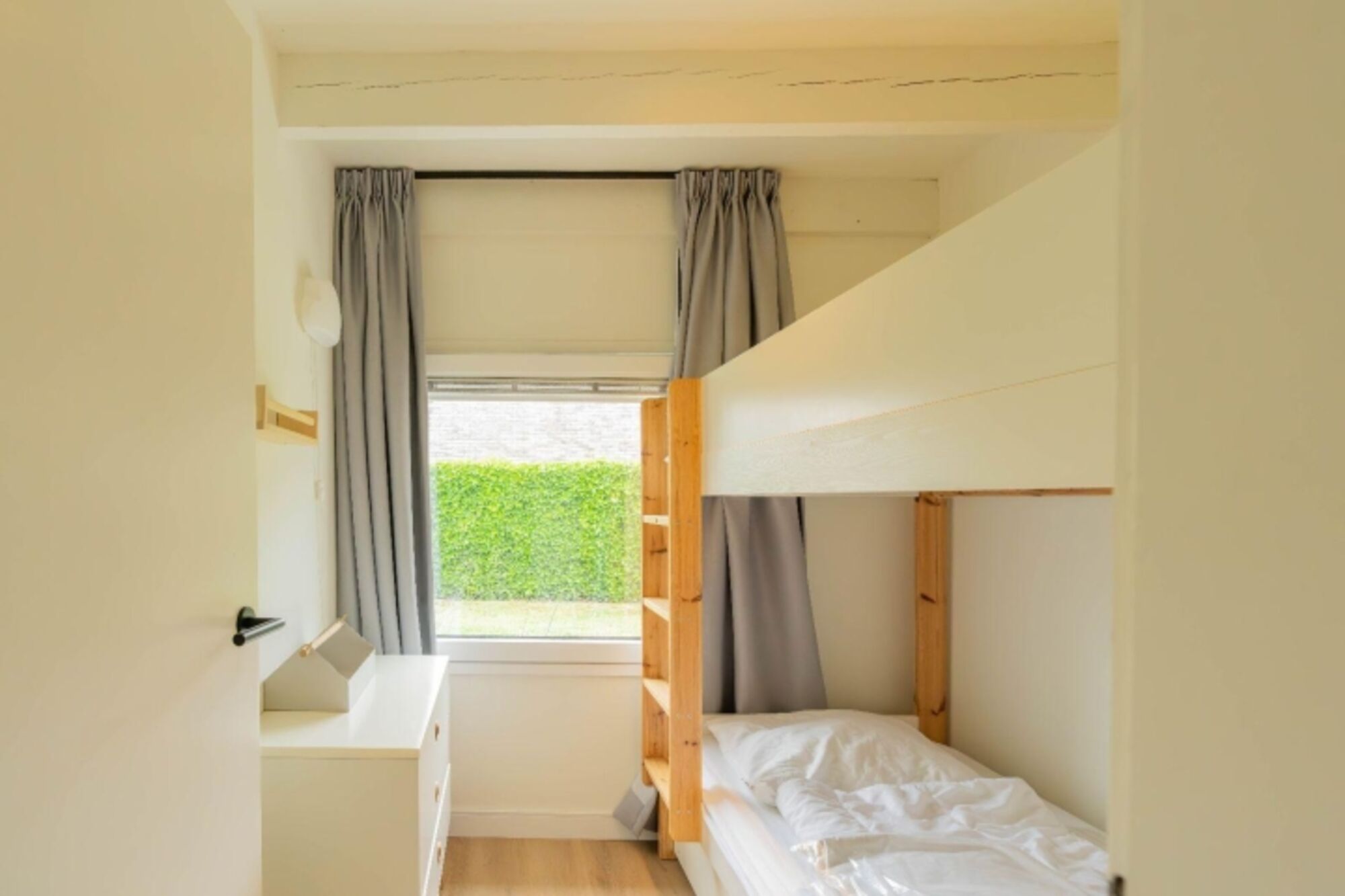 Das Haus verfügt über drei Schlafzimmer: Zwei davon sind mit komfortablen Doppel-Boxspringbetten (1,60 × 2,00 m) ausgestattet, das dritte Schlafzimmer bietet ein Etagenbett (0,90 × 1,90 m) – ideal für Kinder. Alle Zimmer verfügen über ausreichend Stauraum und Verdunkelungsvorhänge, damit Sie ruhig und erholsam schlafen können. Obwohl insgesamt sechs Schlafplätze vorhanden sind, ist das Haus für maximal vier Erwachsene geeignet.