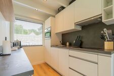 Die halboffene, vollständig ausgestattete Küche lässt keine Wünsche offen: Spülmaschine, Backofen, Mikrowelle, Induktionskochfeld, Kühlschrank mit Gefrierfach, Nespresso-Kaffeemaschine, Wasserkocher, Toaster und Zitruspresse – hier finden Sie alles, was Sie zum Kochen brauchen.