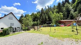 Die große 250 qm sonnige Garten nicht direkt vom Haus aus erreichbar mit verschiedenen eingezäunte Bereichen laden zum relaxen und entspannen ein. Ihre Kinder können unbeschwert spielen während Sie im Hängesessel ein Buch lesen und dem rauschenden Bach lauschen. Genießen Sie die Abendsonne bei einem Gläschen Wein in der gemütlichen Lounge Ecke vor dem Haus.
