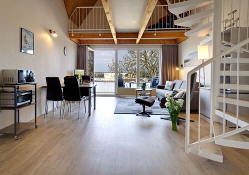 Willkommen in der Seeschwalbe 38: Ein großzügiges Maisonette-Appartement über zwei Etagen mit Galerie und gemütlichem Dachbalkon. Genießen Sie den traumhaften Blick auf die Ostsee und beobachten Sie die vorbeiziehenden Schiffe – besonders stimmungsvoll bei Sonnenuntergang. Das Appartement bietet ein helles Wohn-Esszimmer mit Schlafcouch, ein separates Schlafzimmer, zwei Bäder, Küchenzeile und kostenfreies WLAN. Haustiere sind willkommen, Ihr Parkplatz liegt direkt vor dem Haus.