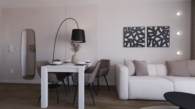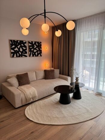 Das stilvolle und helle Apartment bietet Platz für bis zu 4 Personen. Es verfügt über ein gemütliches Wohnzimmer mit ausklappbarem Schlafsofa für zwei Personen, ein separates Schlafzimmer mit komfortablem Doppelbett sowie ein modernes Badezimmer. Die voll ausgestattete Küchenzeile lässt keine Wünsche offen: Geschirrspüler, Kaffeemaschine und sämtliche Kochutensilien stehen bereit – perfekt, um regionale Spezialitäten zuzubereiten oder den Tag mit einem ausgiebigen Frühstück zu beginnen.