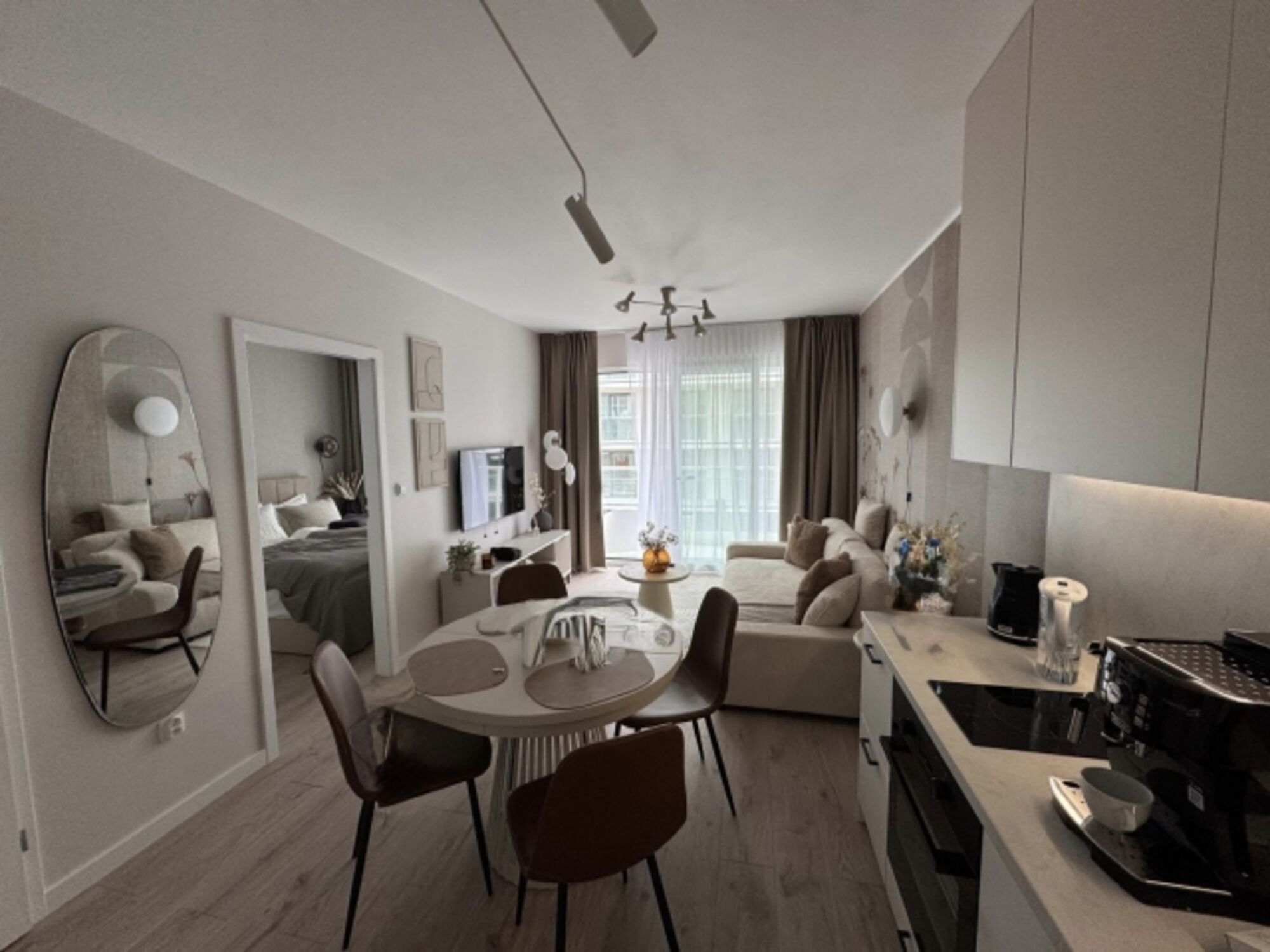 Das stilvolle und helle Apartment bietet Platz für bis zu 4 Personen. Es verfügt über ein gemütliches Wohnzimmer mit ausklappbarem Schlafsofa für zwei Personen, ein separates Schlafzimmer mit komfortablem Doppelbett sowie ein modernes Badezimmer. Die voll ausgestattete Küchenzeile lässt keine Wünsche offen: Geschirrspüler, Kaffeemaschine und sämtliche Kochutensilien stehen bereit – perfekt, um regionale Spezialitäten zuzubereiten oder den Tag mit einem ausgiebigen Frühstück zu beginnen.
