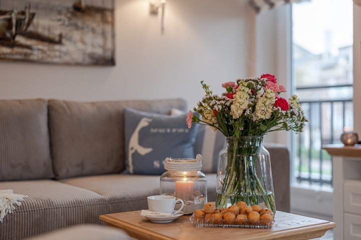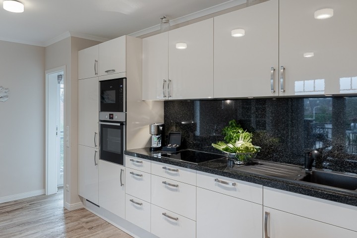 Die barrierefreie 51 m² große Ferienwohnungerwohnung ist bequem per Aufzug erreichbar und bietet Platz für bis zu 3 Personen. Neben einem separaten Schlafzimmer überzeugt der lichtdurchflutete Wohn-Essbereich mit stilvollem Interieur und einem komfortablen Schlafsofa. Die moderne Küche ist voll ausgestattet und lädt zum gemeinsamen Kochen ein.