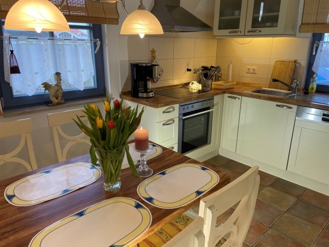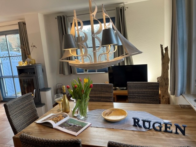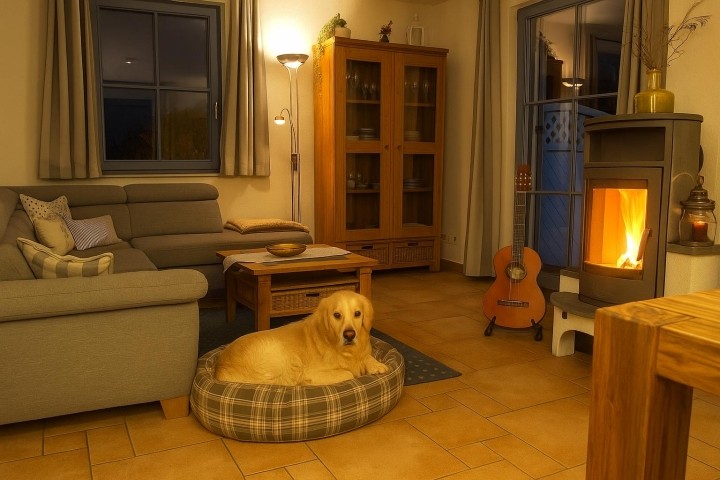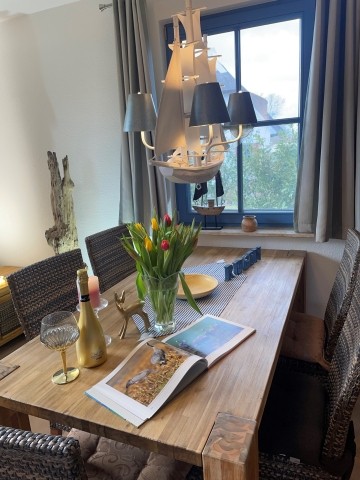Die Einrichtung ist hochwertig, geschmackvoll und mit viel Liebe zum Detail ausgewählt. Eine voll ausgestattete Küche, WLAN, Waschmaschine sowie ein großzügiger Wohnbereich mit Kamin schaffen ein Zuhause auf Zeit – zu jeder Jahreszeit.