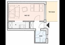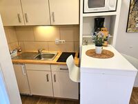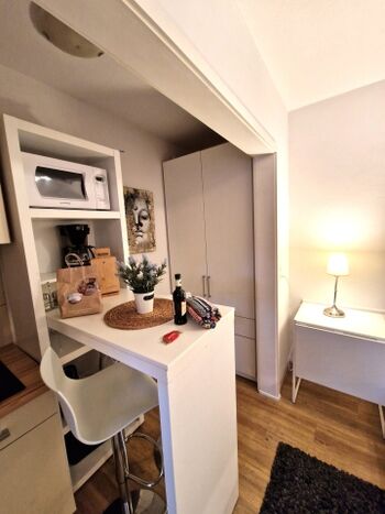 Der gemütliche Wohn/Schlafbereich bietet genügend Platz zum Entspannen. Die angrenzenden Küchenzeile mit allem, was man braucht, runden diesen Raum ab. Ferner verfügt das Apartment über ein Duschbad.