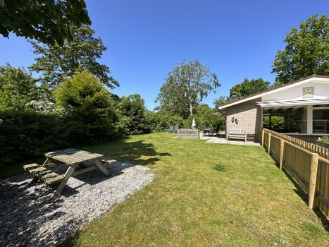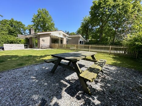 Das Ferien-Bungalow ist umgeben durch einem gepflegten Garten, mit zwei sonnigen Terrassen und