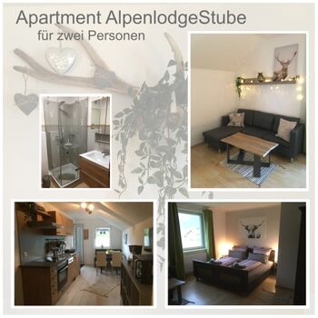 Unser romantisch-rustikales Apartment AlpenlodgeStube erfreut sich großer Beliebtheit unter anderem auch unter Verliebten und Hochzeitsreisenden. Die moderne Küche beinhaltet alles, was für einen schönen Start in den Tag gebraucht wird. Vorhanden sind neben Toaster, Backofen, Kaffeemaschine, Wasserkocher, ausreichend Geschirr, Besteck und Kochutensilien natürlich auch Herd, Kühlschrank mit Gefrierfach und eine Mikrowelle.