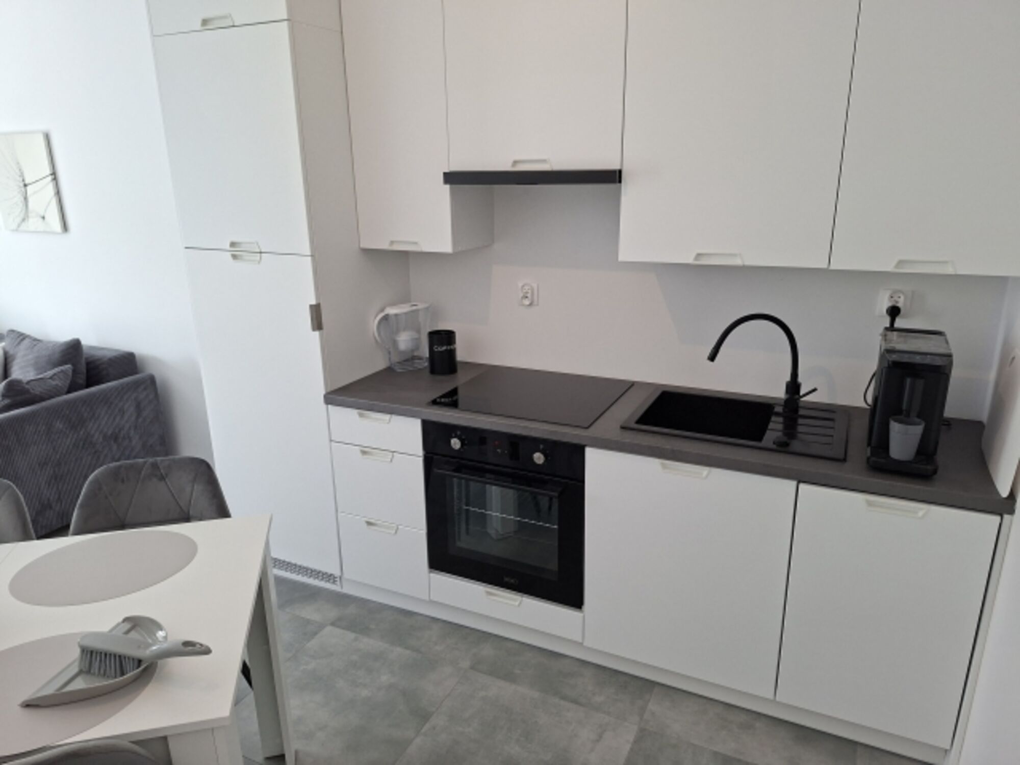 Spülmaschine, Kaffeeautomat und Backofen.