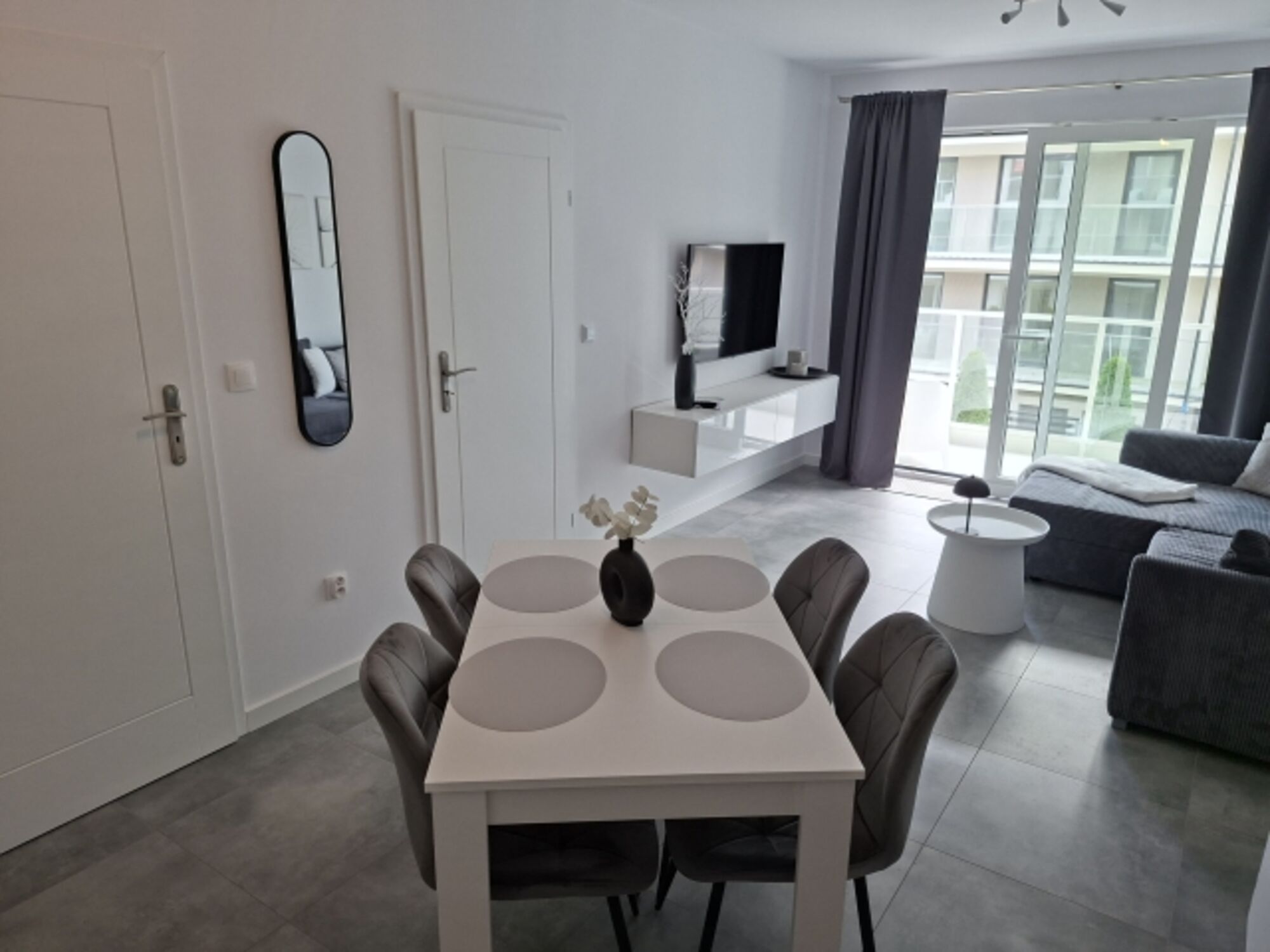Das Apartment befindet sich in einem Neubau in Rewal.