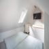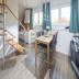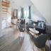 Eine moderne Buchentreppe im Wohnbereich führt Sie nach oben in das gemütliche Loft mit Doppelbett, das auch als zwei Einzelbetten gestellt werden kann.