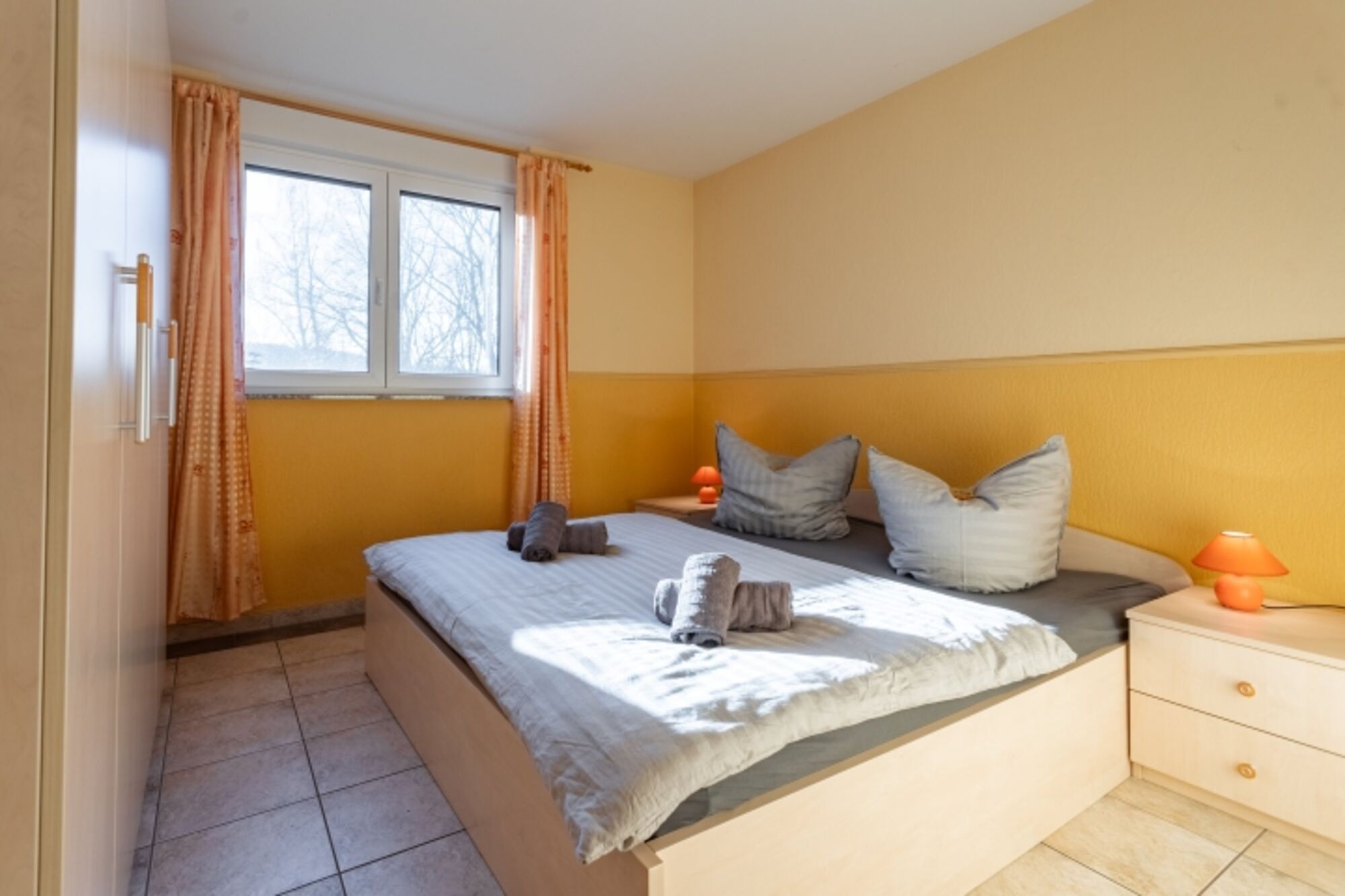 - Separates Schlafzimmer mit Doppelbett und geräumigem Kleiderschrank