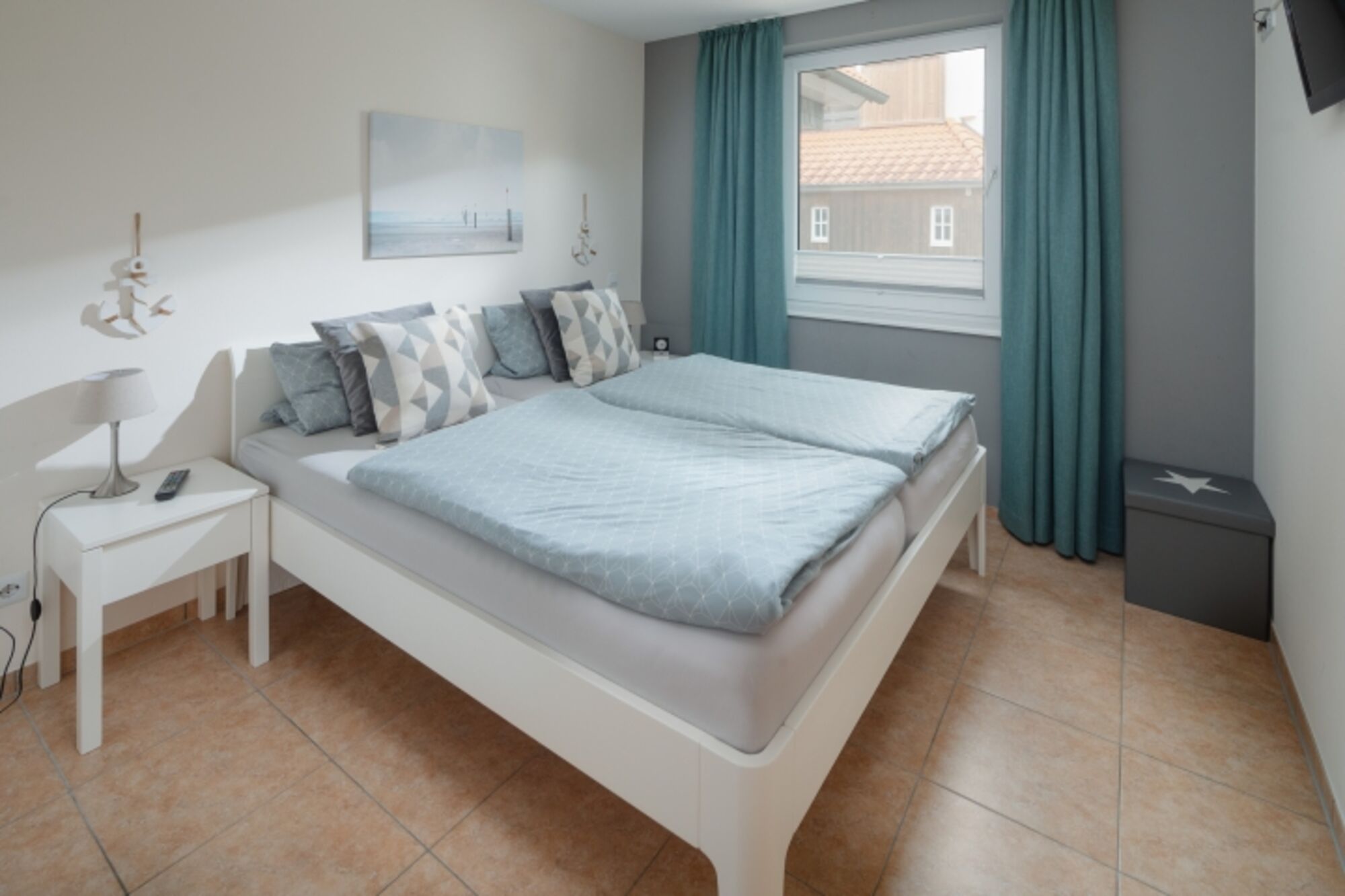 Die angebotene, modern ausgestattete 4 Sterne, 100 qm EG-Wohnung Süd ( barrierefrei ) mit einer großen Südterrasse bietet Platz für bis zu 6 Personen. Die drei Schlafzimmer mit Wohlfühlambiente haben jeweils ein Doppelbett, sowie einen großen Kleiderschrank, mit einem Safe und eine gemütliche Sitzgelegenheit.