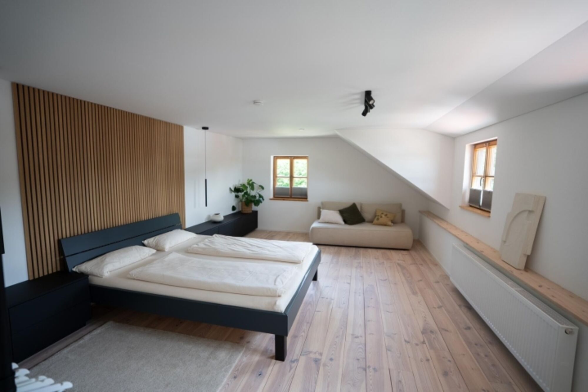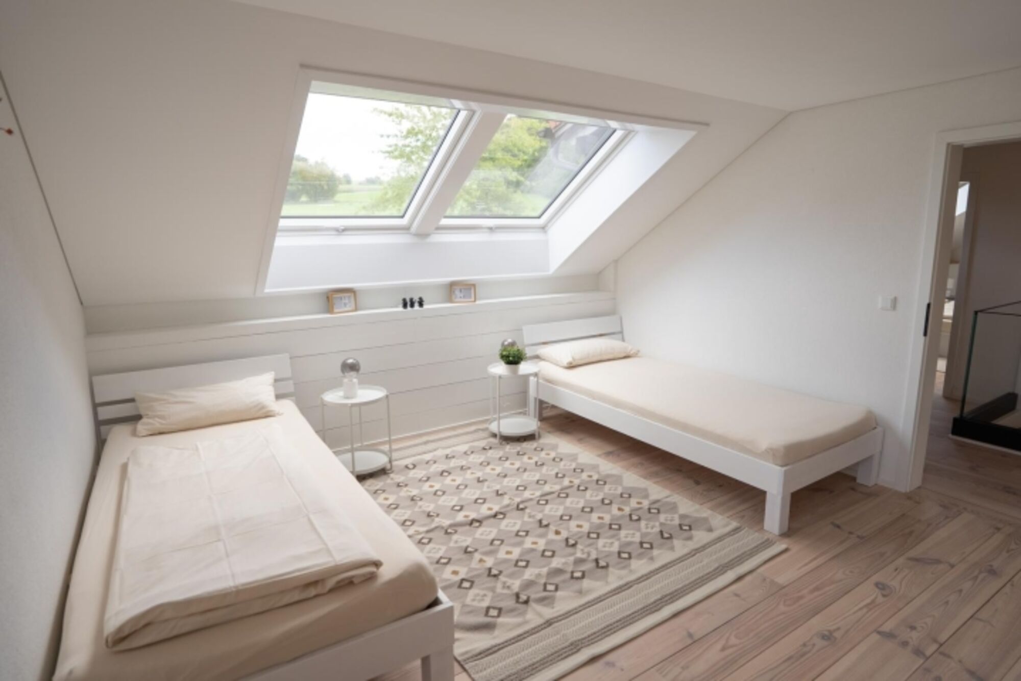 Einzelbetten (100 x 220 cm), auch zu einem Doppelbett kombinierbar.