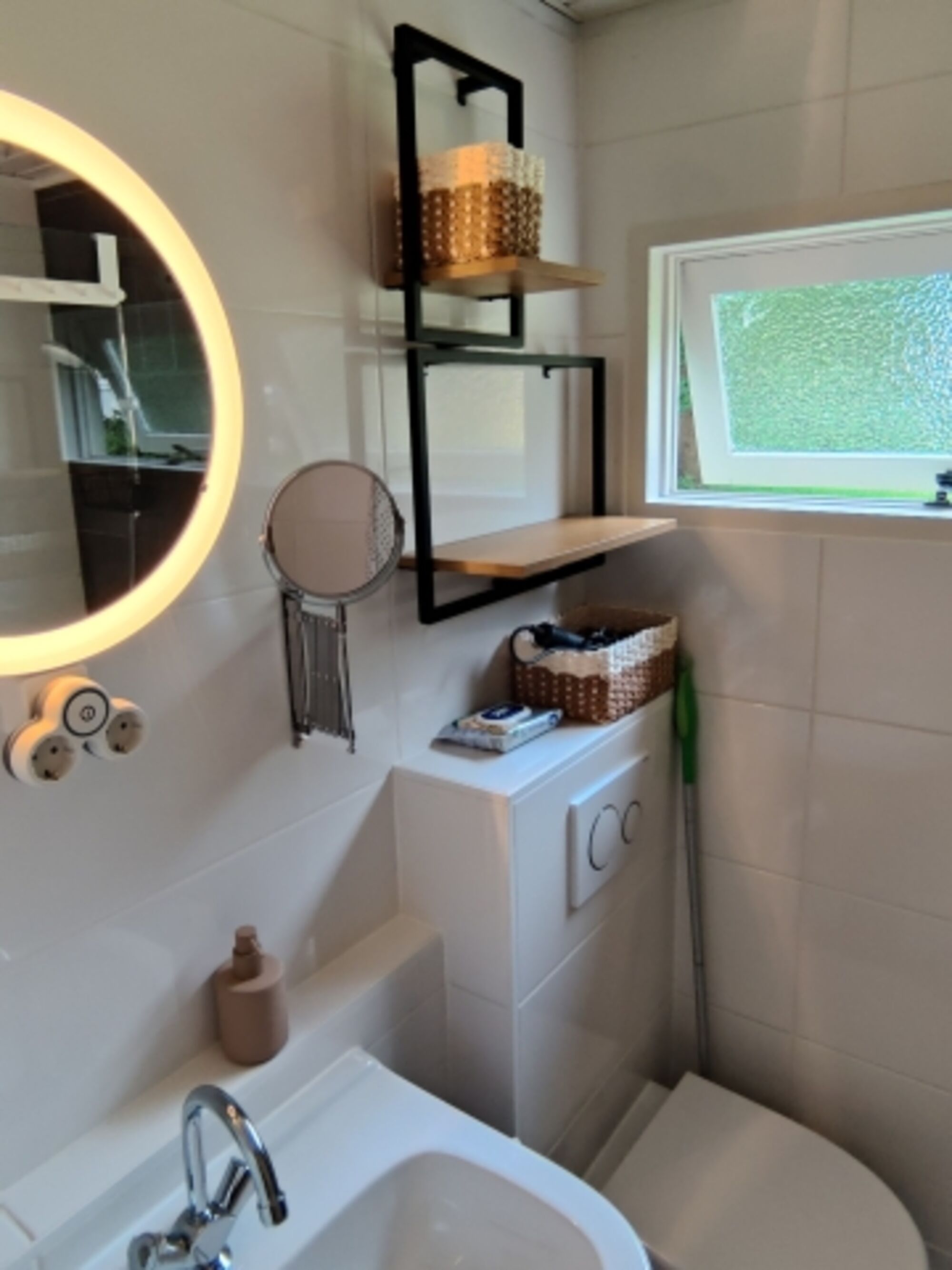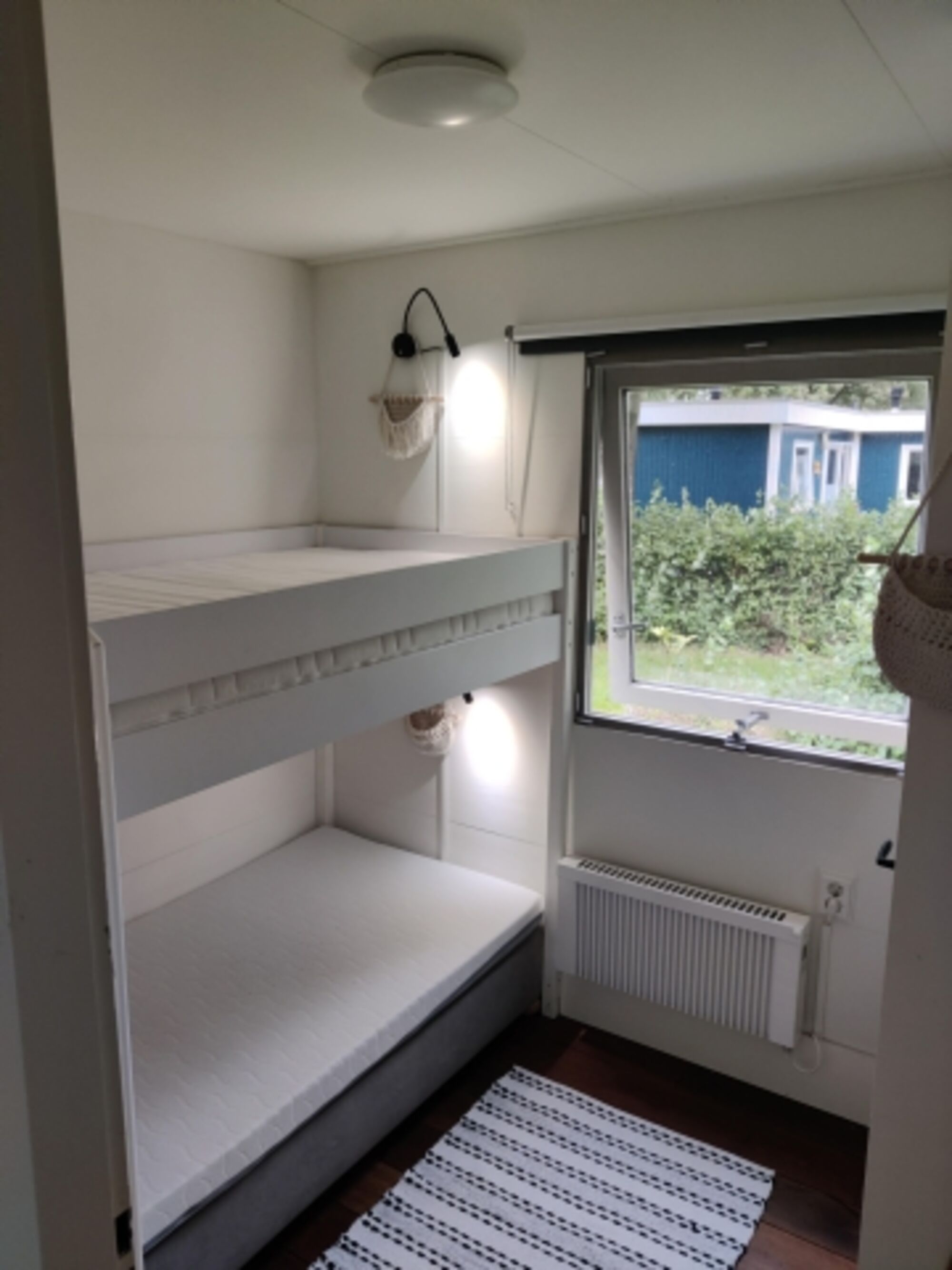 Herzlich willkommen in unserem liebevoll ausgestatteten Chalet in Andijk! Genießt entspannte Tage in unserem 47m² großen Ferienhaus, das mit allem Komfort für euch eingerichtet wurde. Es gibt ein Elternschlafzimmer mit einem komfortablen 160x200cm Boxspringbett und Schrank, sowie ein Kinderschlafzimmer mit Hochbett und praktischem Einbauschrank. Für ungestörten Schlaf sind beide Schlafzimmer mit Verdunklungsrollläden versehen. Im neu renovierten Badezimmer mit begehbarer Dusche findet ihr einen beleuchteten Spiegel, einen separaten Kosmetikspiegel und einen Ionen-Föhn.