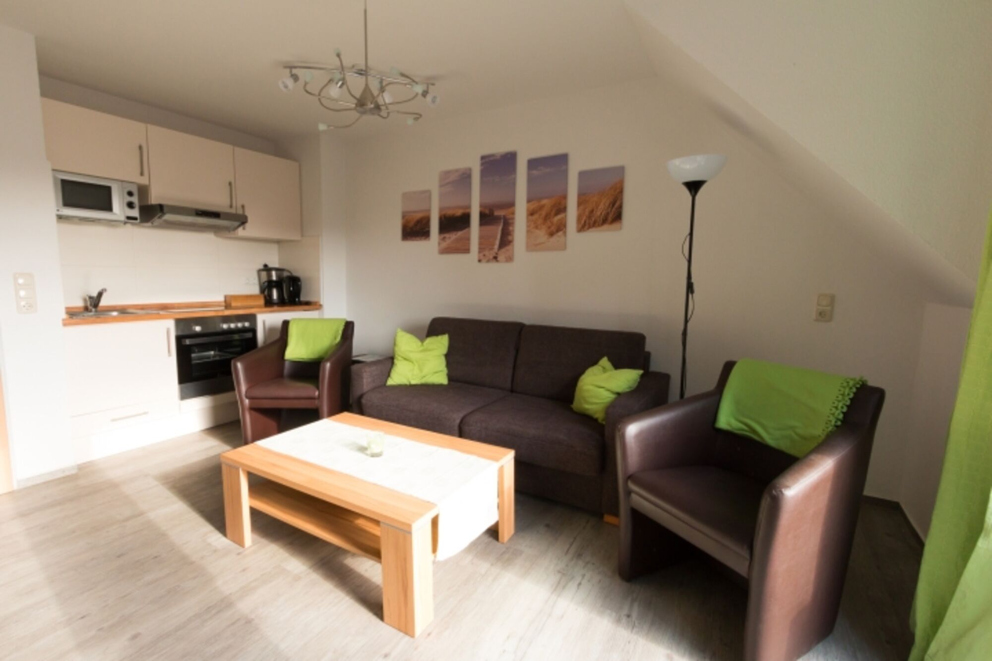 Die Ferienwohnung ist hochwertig ausgestattet und bietet Ihnen im Wohnzimmer einen großen 40"-Fernseher. Zudem stehen ein Internetradio und ein Blu-Ray-Player samt kleiner, aktueller Filmsammlung für Sie bereit. Die Küche ist mit Mikrowelle, Ceran-Kochfeld, Backofen, Kühlschrank inkl. Gefrierfach, Wasserkocher, Toaster, Eierkocher sowie ausreichend Koch- und Essgeschirr sehr gut ausgestattet. Außerdem ist nicht nur eine Filter-Kaffeemaschine vorhanden, sondern auch ein Tassimo-Gerät.