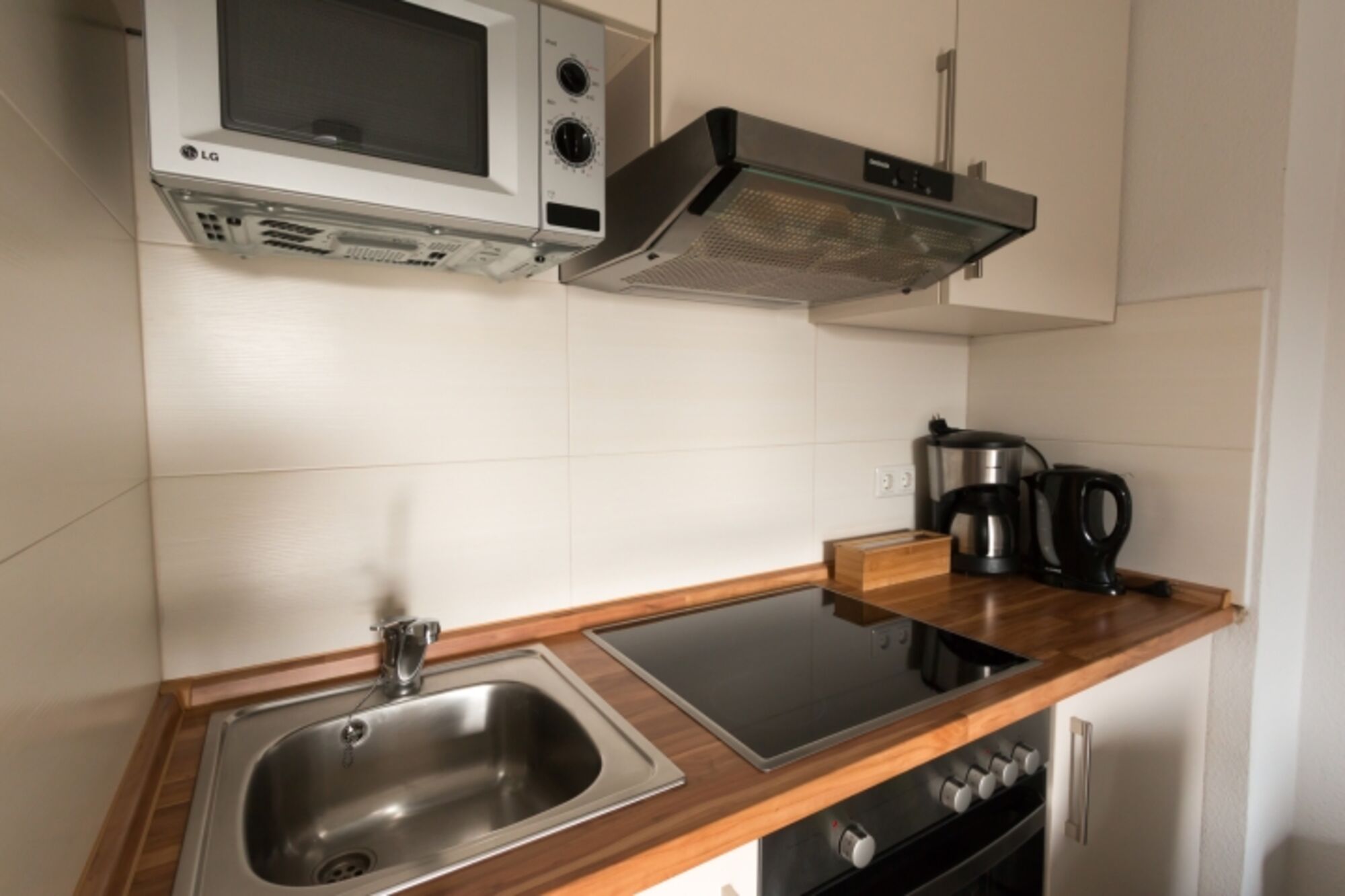 Cerankochfeld, Kühlschrank mit Gefrierfach, Tassimo-Kaffeautomat, Eierkocher