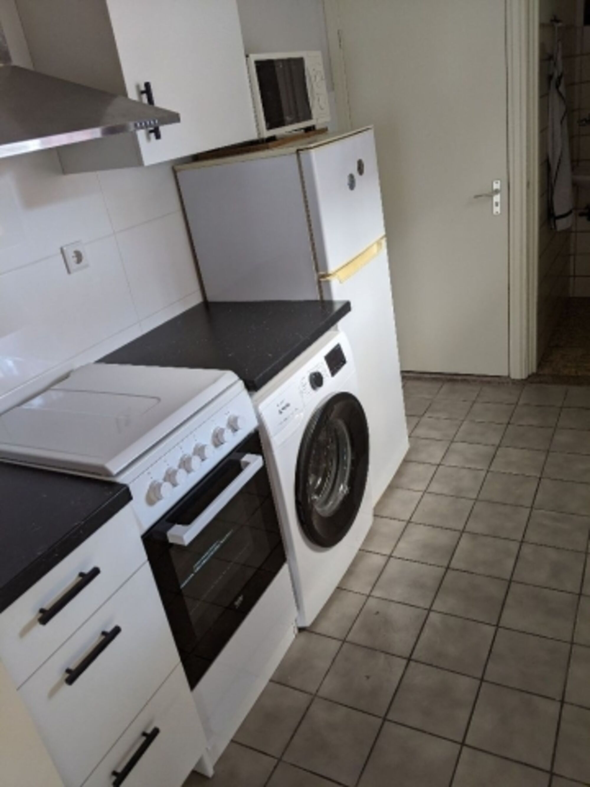 4-Platten Herd, Gasofen / Gasherd, Dunstabzugshaube, Kühlschrank mit Gefrierfach, Korkenzieher / Flaschenöffner, Gewürze (Salz, Pfeffer, Zucker), Essplatz in der Küche