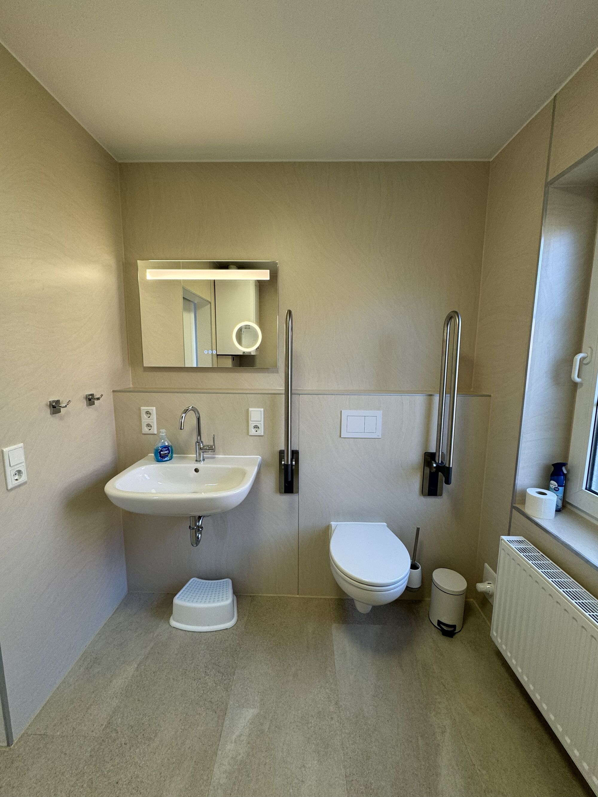 Das Bad im Erdgeschoss ist barrierearm und komplett stufenfrei ausgestattet: