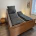 Eines der beiden Betten verfügt über einen elektrisch verstellbaren Lattenrost, bei dem sich Kopf- und Fußteil bequem per Knopfdruck anpassen lassen – für spürbar mehr Schlafkomfort und eine angenehme Entlastung.