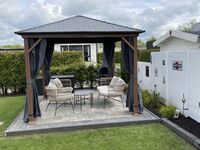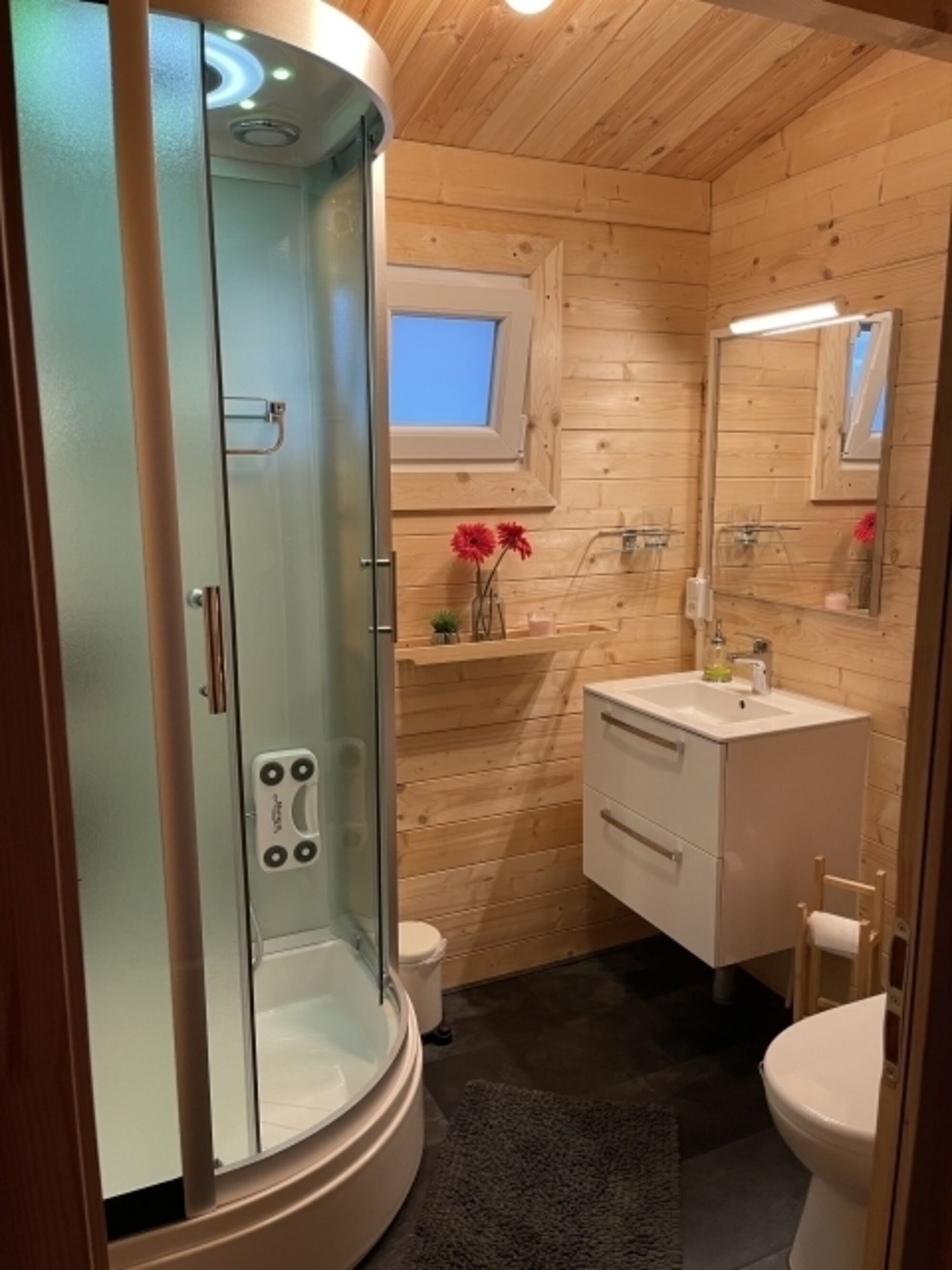 Es bietet Platz für 4 Personen + 1 Baby, und besteht aus Wohn- und Küchenbereich mit voll ausgestatteter Einbauküche, 2 Schlafzimmern, 1 Bad sowie einer überdachten Außenterrasse. Kaminofen, Smart- TV, WLan und Wandtresor sind ebenso enthalten. Einen Waschtrockner finden Sie im angrenzenden Gartenhaus. Ein große Grillterrasse überdacht mit Pavillon lädt zu gemütlichen Abenden am Kamingrill ein.