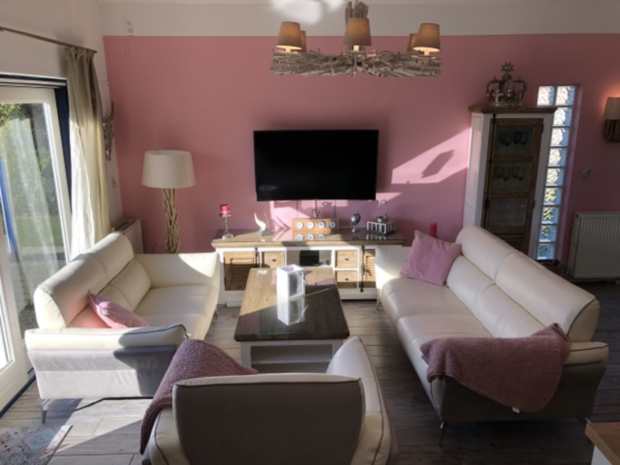 Es ist gemütlich, komfortabel und modern eingerichtet und verfügt im Wohnzimmer mit neuem Ledersofa/Sessel und über einen 55" Samsung Curved Smart TV mit SAT-Anschluss, XBox one S und einer Samsung Hifi Anlage.