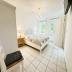 Das Wohnzimmer mit zwei Sofas und Smart-TV (Satellitenempfang) lädt zum Entspannen ein, ein gemütlicher Schlafbereich ist durch einen Raumteiler vom Wohnzimmer abgetrennt. Das zweite Schlafzimmer bietet zusätzlich einen eigenen Fernseher und direkten Zugang zum großzügigen Tageslichtbad mit komfortabler Dusche – außerdem gibt es ein separates Gäste-WC.