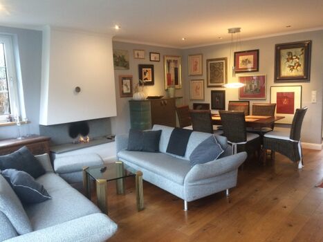 TV, TV-Sat, HDTV Flachbildschirm, Bücher, Offener Kamin, 3er-Sofa, 2er-Sofa