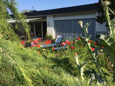 Im Sommer die Ruhe im Garten, ein Spaziergang durch das angrenzende Naturschutzgebiet oder an den Strand das Meeresfeeling genießen.