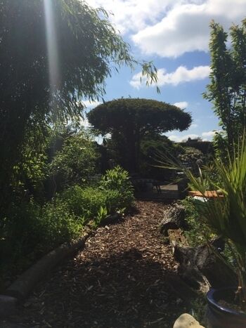 Haus und Garten wurden nach Feng-Shui-Regeln entstört und ist auch weitgehend nach diesen Richtlinien gestaltet und eingerichtet, um hier eine harmonische Aura zu erzeugen.