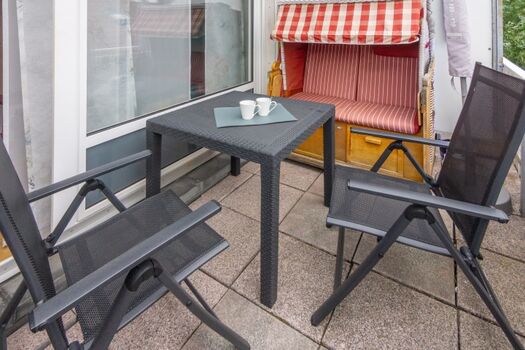 Bei sonnigem Wetter können Sie auf dem geräumigen Balkon im Strandkorb entspannen.