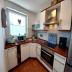 Die Unterkunft verfügt im Erdgeschoss über eine kleine Diele, von der das Gäste-WC und die Abstellkammer mit Waschmaschine abgehen. Durch eine Zwischentür gelangt man in den Wohnraum mit Einbauküche, Essgarnitur, gemütlicher Sitze-Ecke und Terrasse.