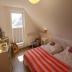 OG: 1 Schlafzimmer mit Doppelbett (180 x 200 cm), 2 Nachtkonsolen mit Nachttischlampen, Kleiderschrank, kleine Sitzecke im Erker.