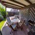 Vom Wohnbereich gelangen Sie über eine Tür auf die Terrasse (Süd-West-Richtung). Auf den dort verfügbaren Gartenmöbeln können Sie an entspannten Tagen und Abenden die Sonne genießen, einen schönen Grillabend verbringen oder mit Ihren Kindern auf der Rasenfläche spielen. Ein Markise spendet Ihnen zusätzlich Schatten an schönen Sommertagen.