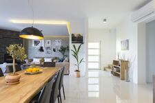Die Villa bietet Platz für bis zu 10 Personen und verfügt über 4 moderne Schlafzimmer und 6 Badezimmer, was Komfort und Privatsphäre für alle Gäste garantiert, während ein zusätzliches Schlafsofa im Wohnzimmer Platz für 2 weitere Personen bietet. Besonderes Augenmerk wurde auf Details und luxuriöse Innenausstattung gelegt. Im Erdgeschoss befindet sich ein geräumiges Wohnzimmer mit Küche, ein Schlafzimmer mit eigenem Bad, ein zusätzliches Badezimmer und ein Waschraum. Im Obergeschoss befinden sich drei weitere Schlafzimmer, jeweils mit eigenem Bad und Meerblick, von denen zwei Zugang zu einer Terrasse haben.