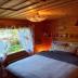 Das Bett und der Kleiderschrank kommen aus dem Schwarzwald, dies unterstreicht die Atmosphäre eines Hexenhäuschen.