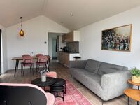 Im offenen Wohnbereich erwartet dich ein gemütliches Sofa, ein großer Smart-TV (mit internationalen Sendern) und eine helle Fensterfront mit Blick auf das IJsselmeer.