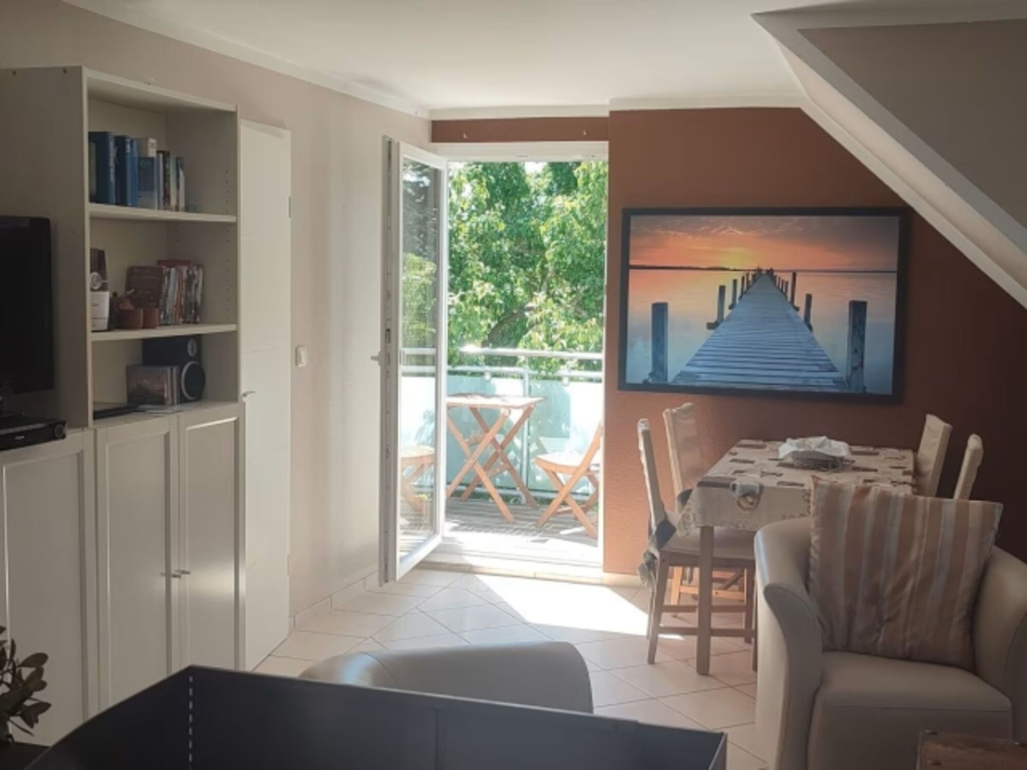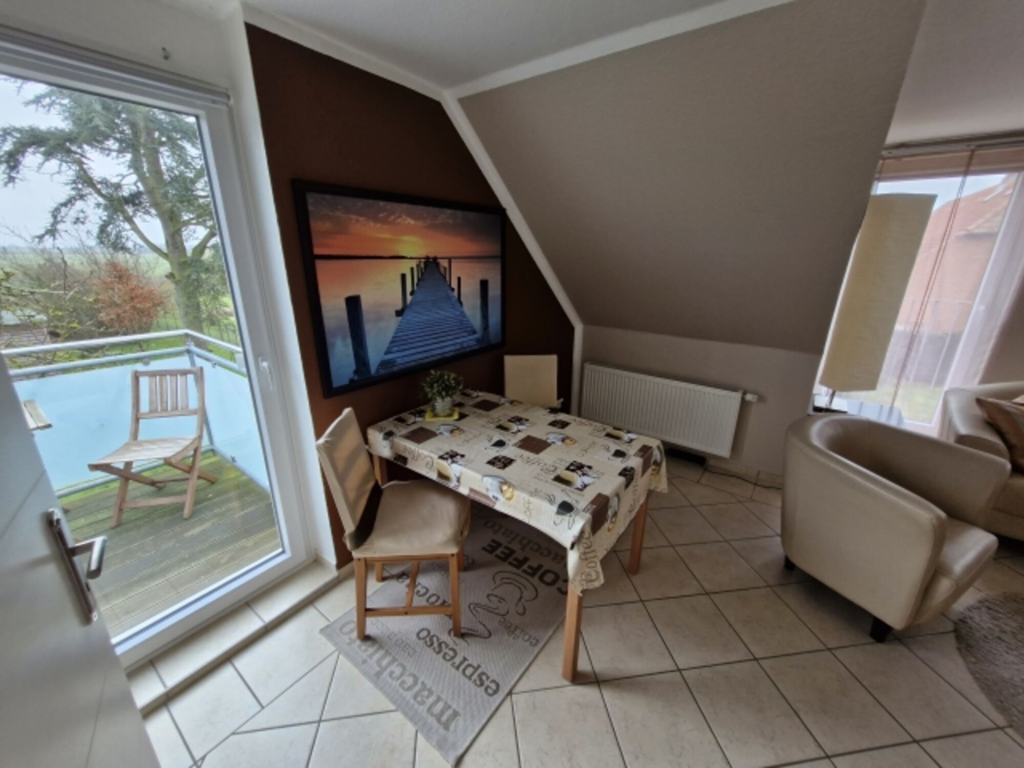 Unsere kleine Obergeschoßwohnung ist ein gemütliches Nest für zwei Personen. Auf dem Balkon lässt es sich wunderbar frühstücken oder den Sonnenuntergang genießen.
