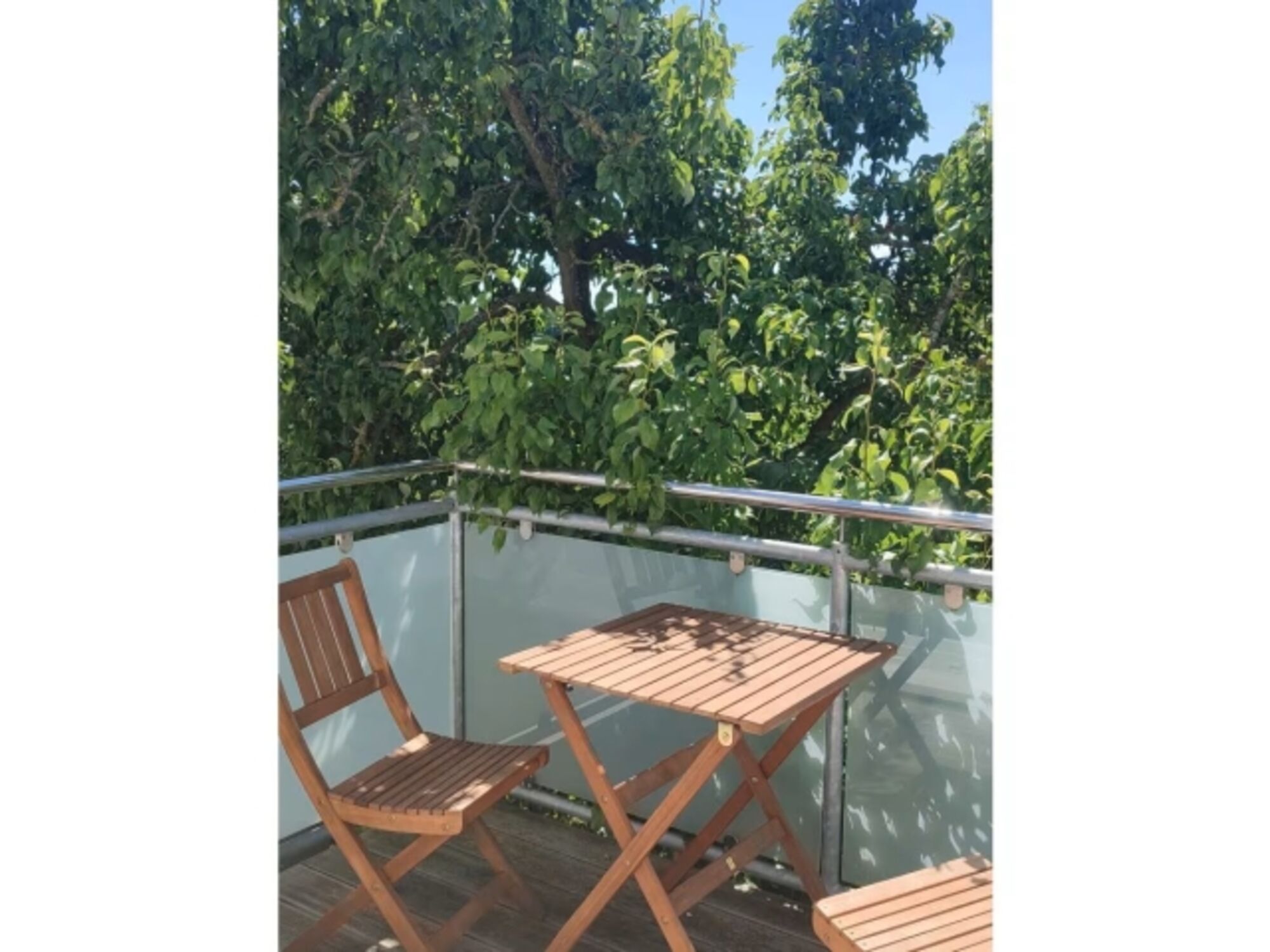 An der Südseite befindet sich ein schöner, kleiner Balkon. Natürlich darf der große Garten mitbenutzt werden. Das Grundstück endet an einem großen Feld mit Weitblick.