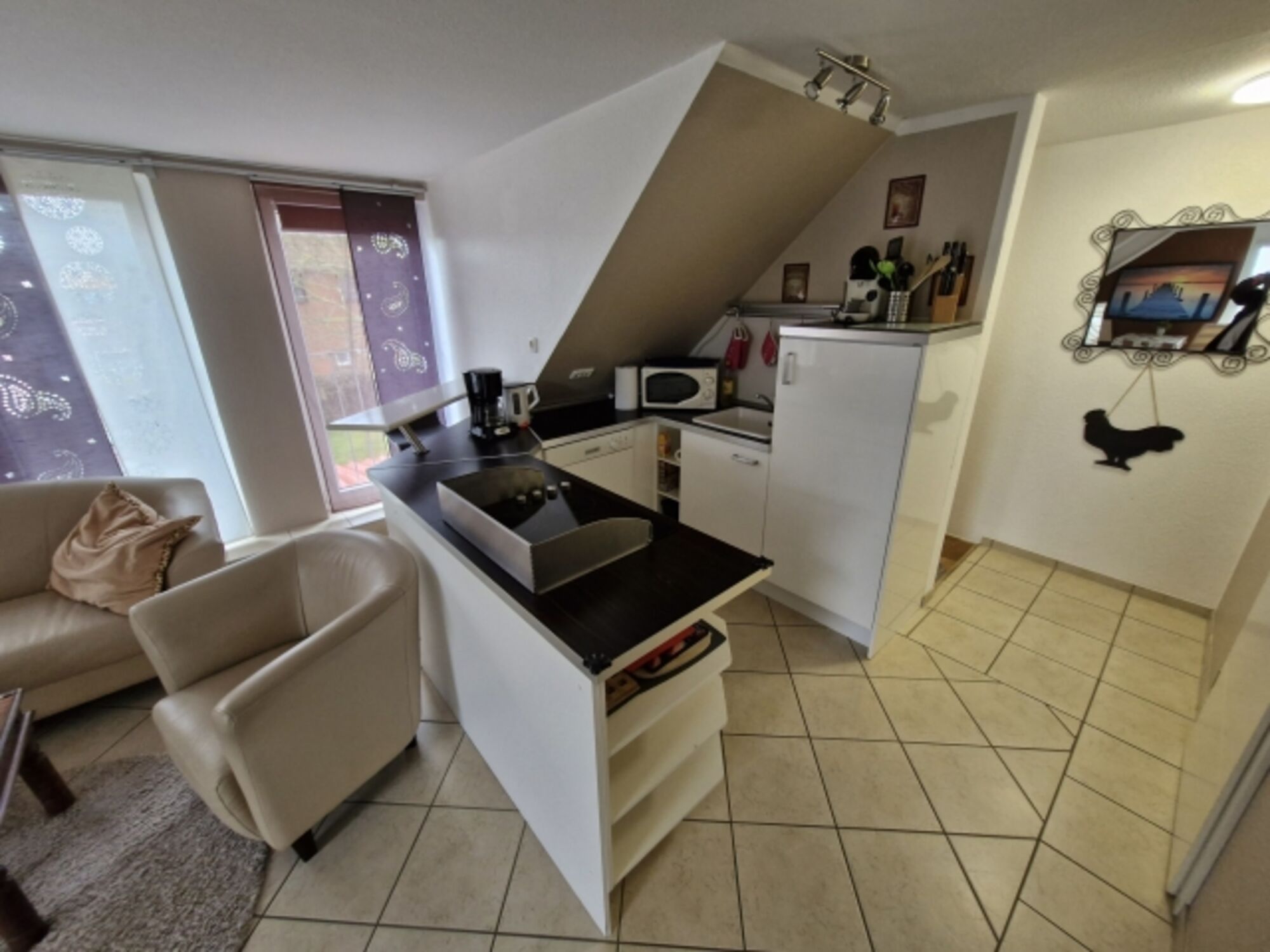 Die Ferienwohnung befindet sich im OG eines 3-Familienhauses. Über einen separaten Eingang kommen Sie in die gemütliche 2-Zimmer Wohnung. Die Wohnung ist mit einem hellen Wohnraum mit Esstisch und moderner Küche ausgestattet. Ein kleines Schlafzimmer und ein modernes Duschbad runden die Wohnung ab.