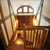 Der Zugang zum Obergeschoss erfolgt über eine Holztreppe, die im Obergeschoss mit einem Türschutzgitter versehen ist.