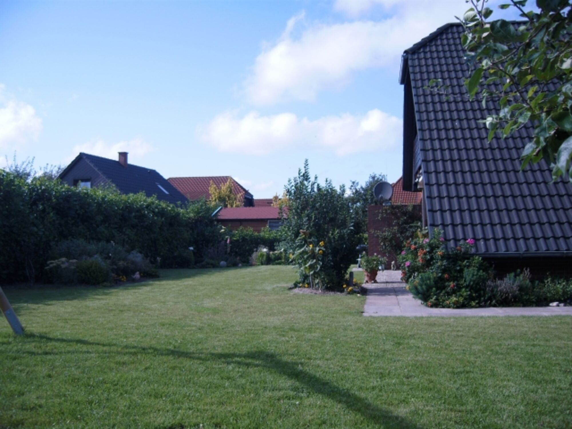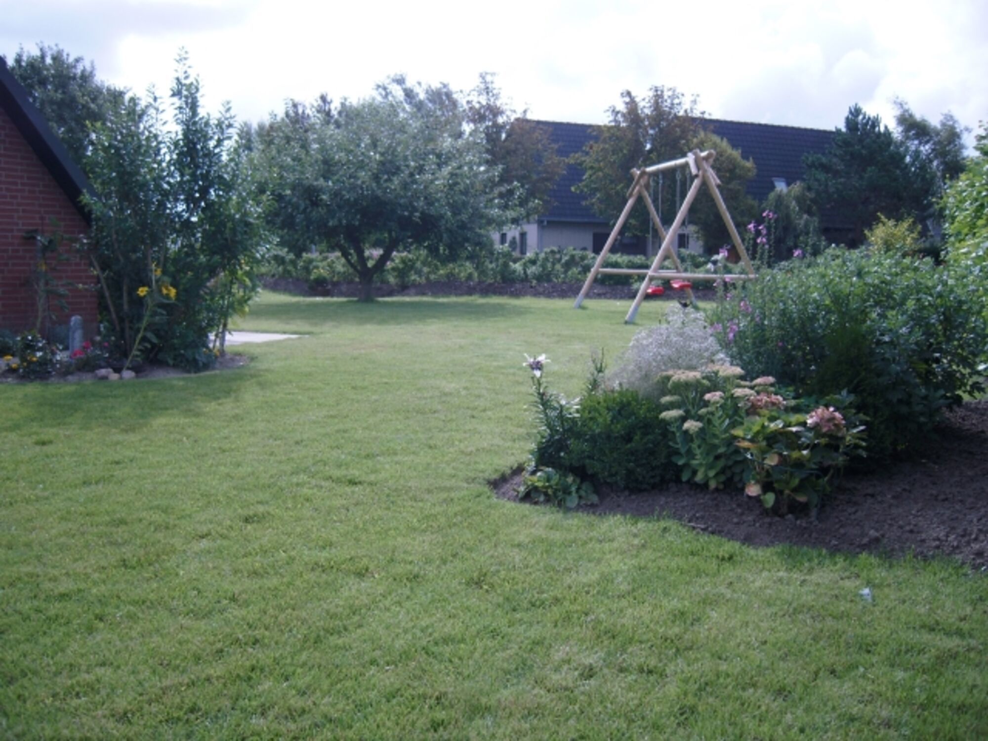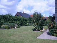 Das durch Zäune eingerahmte Grundstück umfasst 700qm mit großen Rasenflächen, Bäumen und Sträuchern sowie Stellplätzen für zwei Fahrzeuge. Im Außenbereich befindet sich neben jeweils befestigter West- und Südterrasse auch eine große Doppelschaukel und eine Sandkiste für die kleinen Feriengäste. Exklusive Holzgartenmöbel, Strandkorb, Sonnenschirm und -liegen sowie ein Grill stehen Ihnen ebenfalls zur Verfügung. Mit den drei hauseigenen Fahrrädern können Sie bequem die leicht befahrbare Umgebung erkunden.