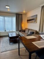 Eine gemütliche Sofaecke und ein Sessel schaffen eine warme Wohlfühlatmosphäre - perfekt für entspannte Abende nach langen Strandspaziergängen. Ein Smart-TV mit internationalen Kanälen sowie schnelles WLAN (ab 100 Mbit/s) stehen ebenfalls zur Verfügung.