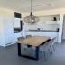 Offen Küche mit Blick auf Essbereich, Wohnraum und Garten