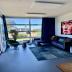 Im offenen Wohnbereich mit Kamin, gemütlicher Sofaecke und bodentiefen Fenstern spürst du sofort: Hier darfst du einfach loslassen.