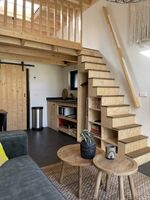 Hier trifft Tiny House Feeling auf großes Glück: nur 300 m vom Strand entfernt, mit privater Terrasse, Holz-pool (Hottub gemeinschaftlich genutzt), Feuerstelle und allem, was euer Herz – und das eures Hundes – begehrt.