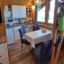 Die Küchenzeile mit Essecke, einem Herd mit 2 Kochfeldern, Mikrowelle, Kühlschrank und Geschirrspühler ist vollausgestattet.