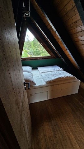 Kleines Schlafzimmer: Ausgestattet mit einem bequemen Doppelbett (140x200cm).