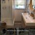 Im Erdgeschoss ein Schlafzimmer mit Doppelbett. Separates Badezimmer mit Duschwanne und doppeltes Waschbecken.